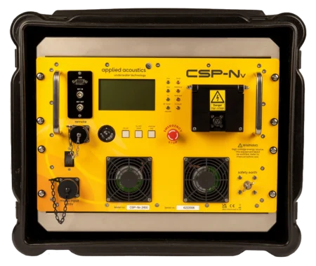 The CSP-S12000 is a compact ‘all-in-one’ power source for marine sparker applications, specifically the applied acoustics Delta Sparker. The high charge rate allows for fast, high-energy sound pulses from the sparker that is used in deep water geohazard surveys